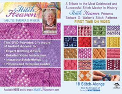 | Barbara Walker’s Stitch-A-Long DVD Posted: 13 Nov 2011 05:17 AM PST 18 different stitch patterns, from lace and cables to colorwork and well, more stitches! This would be an awesome gift for a beginner or advanced beginner knitter. Shown in very clear detail, how to make each stitch, along with tips and techniques to guarantee success. Each segment, is indeed, a stitch-a-long, and you knit the block with the instructor. I… |